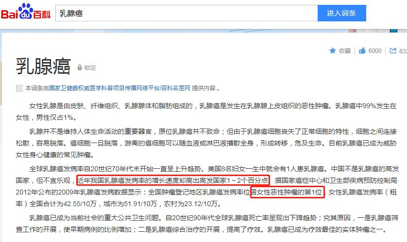 近年我国乳腺癌发病率高出高发国家1-2个百分点